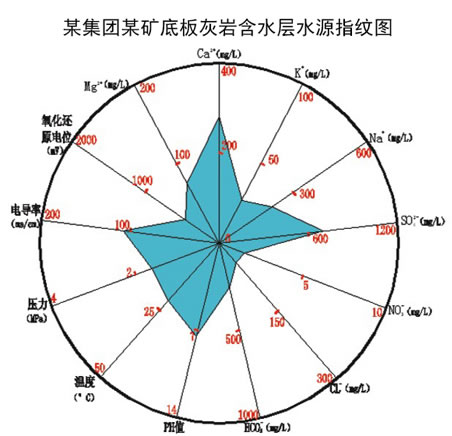 低氧化還原電位顯示水源氧化較低,高電導率顯示水源導電性較好,水溫較高、PH值顯示水源為常溫中性水,壓力顯示水源承壓較大,結(jié)合常規(guī)離子綜合判定水源為灰?guī)r水。