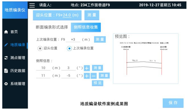 10.人性化的軟件界面,使得數(shù)據(jù)的保存和處理更加方便,具備水平測(cè)量儀,全站儀功能;用于地質(zhì)編錄,巷道收斂測(cè)量,地面巖移觀測(cè)。