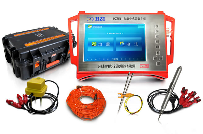 該儀器由地震電法儀主機(jī)、集中式地震電法儀基站、電極、礦用本安型拾震傳感器和線纜組成。