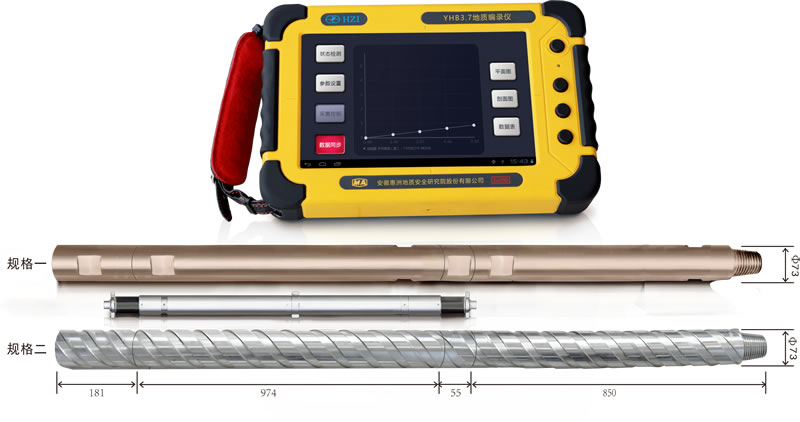 YZG9.6礦用隨鉆測震軌跡儀基于“一種基于彈性波的鉆孔深度檢測系統(tǒng)”、“一種礦井隨鉆測斜勘探系統(tǒng)及其測量方法”2項發(fā)明專利研制,由主機、探管(含三分量傳感器)組成。該設備利用鉆頭為動力源,通過采集、數(shù)據(jù)處理得到整個鉆探施工過程的動力波波場、能譜,能夠客觀自動反演巖性與構造;還包括開鉆時刻、倒尺間隔、換鉆桿根數(shù)、鉆進有效破巖時間、空轉(zhuǎn)時間和退尺等鉆探過程行為,可作為鉆孔驗收的客觀依據(jù),防止鉆探作假,提高鉆探效率。