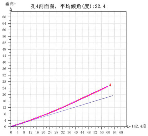 鉆孔在過(guò)鉆孔豎直面上的投影(單獨(dú)反映鉆孔的傾角) 某集團(tuán)某礦老空區(qū)水鉆孔測(cè)量成像成果圖