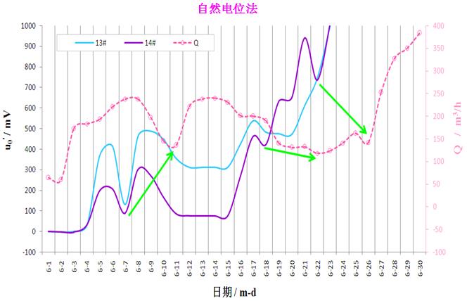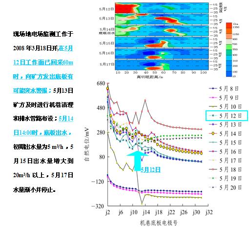 煤礦采掘工作面出水、煤層頂?shù)装宄鏊约袄峡胀杆榷紩䦟?dǎo)致含水滲流狀態(tài)發(fā)生改變,造成地電場異常。因此,通過對地電場進行監(jiān)測,觀測其自然場、一次場、二次場的變化特征,可直觀地得到介質(zhì)的富水狀況、滲流速度及滲流飽和狀態(tài)等的變化情況,從而達到對于底板水害的主動預(yù)警。