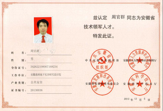 2013年12月5日,我院院長(zhǎng)周官群榮獲安徽省戰(zhàn)略性新興產(chǎn)業(yè)技術(shù)領(lǐng)軍人才稱號(hào),根據(jù)安徽省人力資源和社會(huì)保障廳《關(guān)于印發(fā)<安徽省引進(jìn)培養(yǎng)戰(zhàn)略性新興產(chǎn)業(yè)技術(shù)領(lǐng)軍人才實(shí)施意見(jiàn)>》(皖人社發(fā)〔2012〕38號(hào))、《關(guān)于做好2013年度安徽省戰(zhàn)略性新興產(chǎn)業(yè)技術(shù)領(lǐng)軍人才評(píng)選工作的通知》(皖人社秘〔2013〕316號(hào))等相關(guān)文件精神,我院院長(zhǎng)周官群等47名同志為安徽省戰(zhàn)略性新興產(chǎn)業(yè)技術(shù)領(lǐng)軍人才。