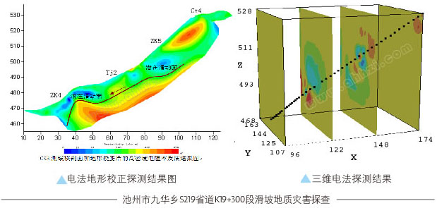 池州市九華鄉(xiāng)S219省K19+300道段發(fā)生滑坡地質(zhì)災(zāi)害,為找道潛在的滑坡面,利用有效的手段進(jìn)行治理,采用了淺層地震和直流電法對(duì)災(zāi)害體進(jìn)行綜合探測(cè)。