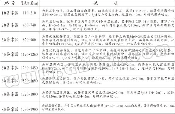 4.查明工作面內煤層厚度小于1m的煤層變薄帶的分布發(fā)育情況。