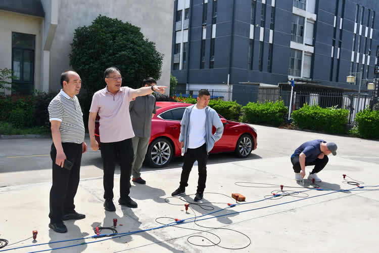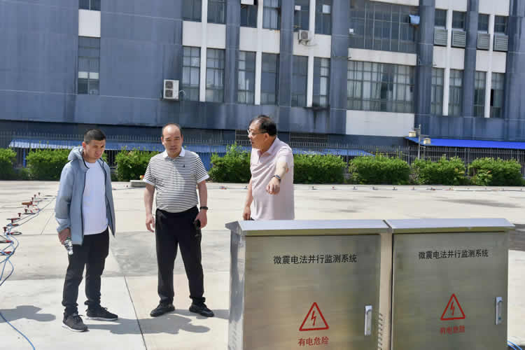 隨后,領(lǐng)導一行實地調(diào)研惠洲院地下、地面試驗場。地下試驗場位于惠洲科技園東南角,占地約600㎡,建設(shè)有1:1模擬地下巷道,同時根據(jù)煤礦常見致災(zāi)因素,模擬有斷層、陷落柱、褶曲等地質(zhì)構(gòu)造并預(yù)埋地震、電法、磁法傳感器及探測線纜,用于進行方法驗證、設(shè)備校驗、認知實習等工作;地面試驗場位于園區(qū)西南角,占地約3000㎡,模擬有煤礦巷道和鉆孔,用于驗證和測試老空水探查方法準確性及鉆孔物探技術(shù)和裝備,同時試驗場還布設(shè)有兩套KJ1640微震電法并行監(jiān)測系統(tǒng),模擬采煤工作面圍面監(jiān)測,布設(shè)有微震傳感器和電法監(jiān)測線纜,用于研究微震定位算法、并行電法水害預(yù)警機理以及微震電法耦合分析處理方法。