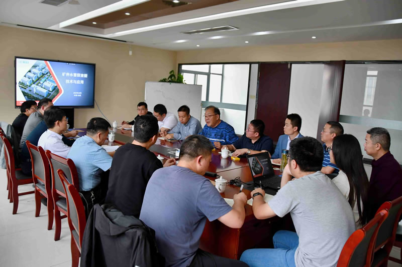 交流中,劉盛東董事長對神火股份一行人的到來表示歡迎,并詳細介紹了公司在礦井防治水、智能物探等領域的工作經驗和取得的成績。技術人員就公司礦井水害探查新技術裝備及應用案例進行詳細匯報。雙方針對神火股份煤礦企業(yè)當前遇到的隱患探查、資源勘探等不確定因素造成的機械化、智能化開采推進困難的問題,從工藝、技術、裝備等方面入手,就切實解決煤礦開采中遇到的實際問題,確保煤礦開采的安全性、經濟性等作了深入探討。