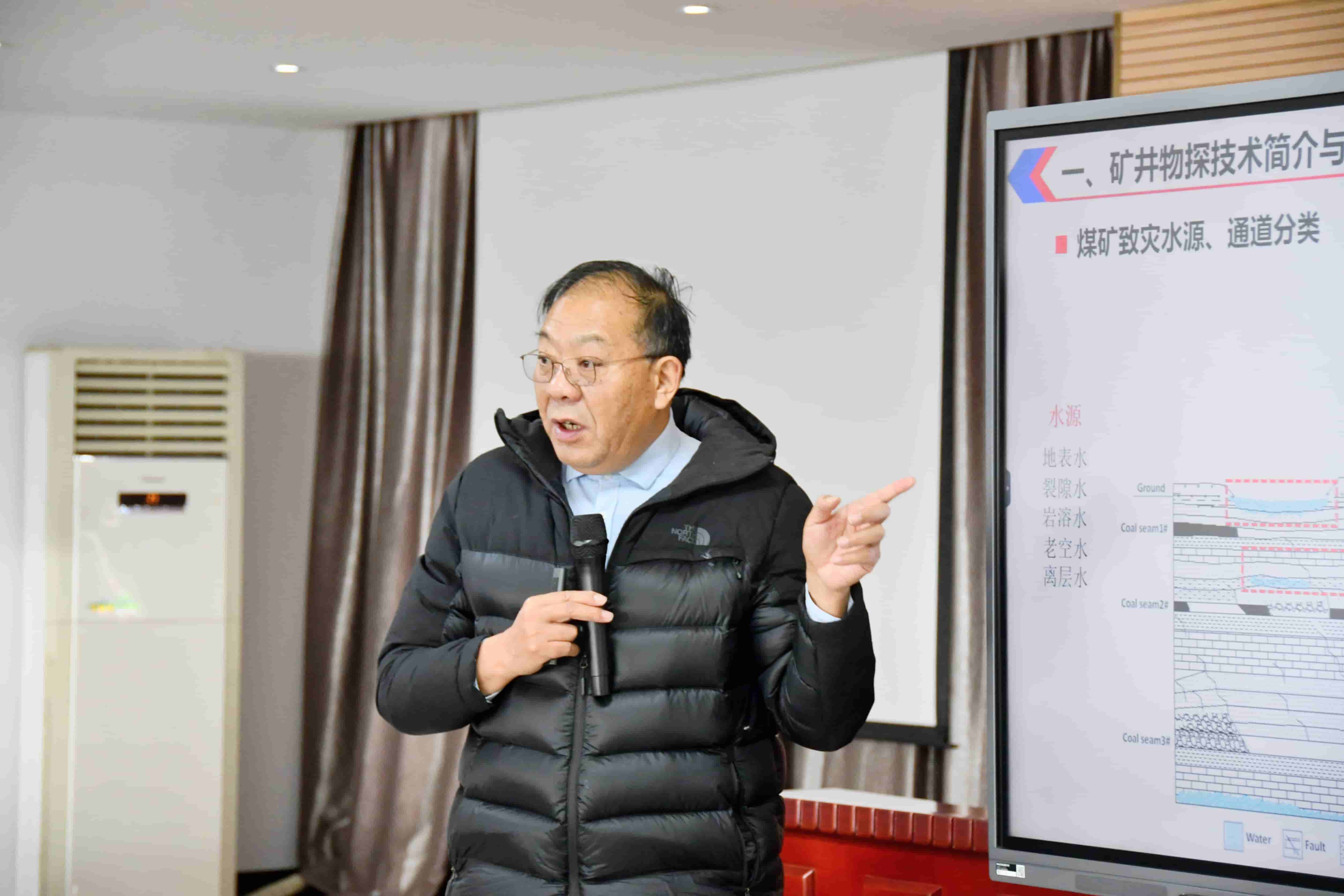 交流期間,惠洲院董事長劉盛東教授作題為“物探技術(shù)在礦井地質(zhì)構(gòu)造探查及水害防治中的應(yīng)用”的專題報告。報告結(jié)合山西省煤礦水害特點及探測技術(shù)現(xiàn)狀,重點圍繞水害監(jiān)測預(yù)警物探新技術(shù)與透明地質(zhì)保障體系,系統(tǒng)闡述了多場景物理場監(jiān)測、微震電法耦合監(jiān)測、鉆孔瞬變電磁及孔中并行電法等關(guān)鍵技術(shù)的原理、應(yīng)用環(huán)境(涵蓋隨采、隨掘、隨鉆等工況)及其技術(shù)優(yōu)勢。